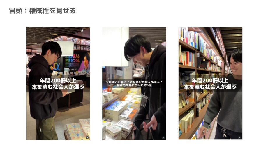 を最初に提示することで、視聴者は「この人の話なら聞いてみよう」と感じ、離脱率が下がります。